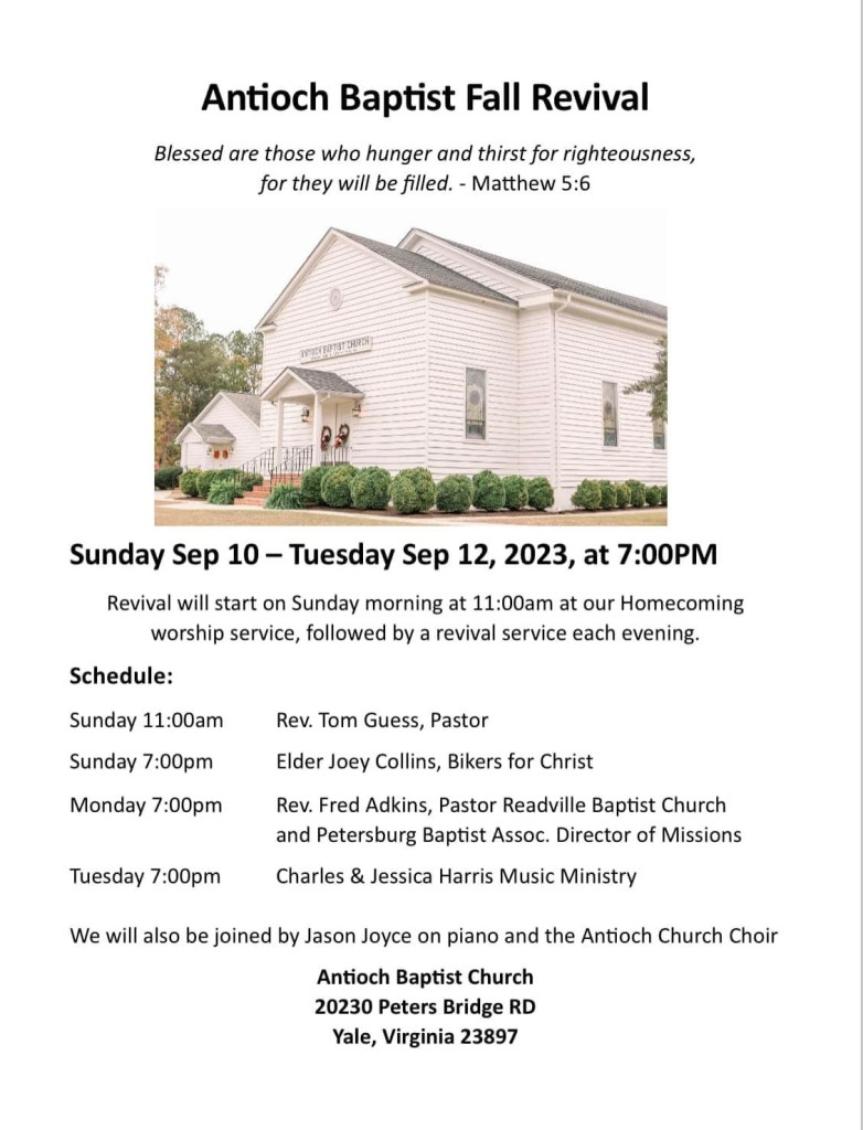 I don’t necessarily think it’s church as much as I think it is business and an overall change in society. Society because of Covid undoubtedly changed forever, but the effects of that are still being felt. Many families started focusing inward, and society in general has become somewhat apathetic about just about everything from social events, to volunteering, to work. It is being felt by civic organizations, non-profits, associations, and absolutely by churches with Antioch being no different. Ask anyone who serves on the nominating committee or any committee for that matter. We are all called to be good stewards of our church, and we are called to share our talents and our spiritual fruits and gifts and as the scripture above tells us, we are to not neglect meeting together to encourage one another as the Day (the return of Christ) approaches. It takes a church (the people) to make a church. If you feel moved or called to do a program, Bible study, ministry, or just share your talent of carpentry, painting, or whatever, let someone know and step up.